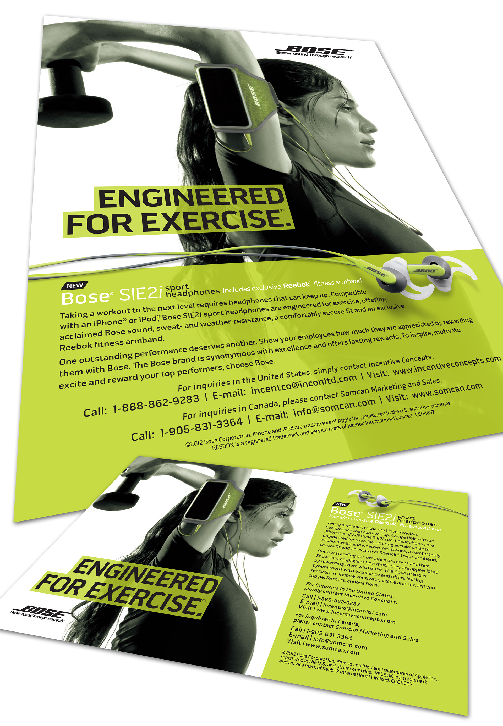 This is an ad layout for a dynamic Bose product shown here in a few adaptations.
