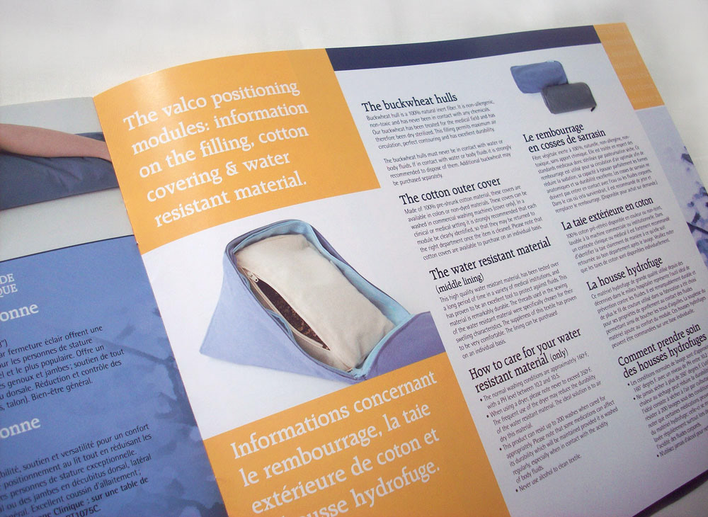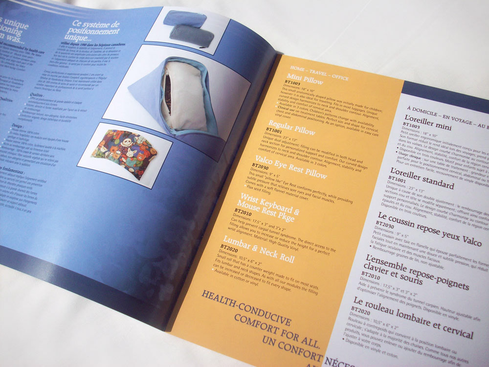 12 page bilingual catalog targeted for consumer and trade in US and Canadian markets. Development and art direction/production of content, photo shoot and design. This catalog was developed along with website for online sales.